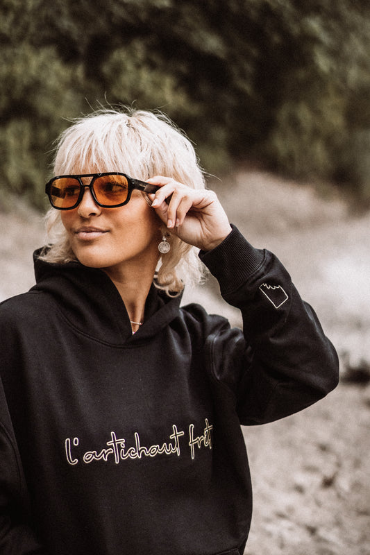AusverkauftEmbroidery Hoodie black lemon